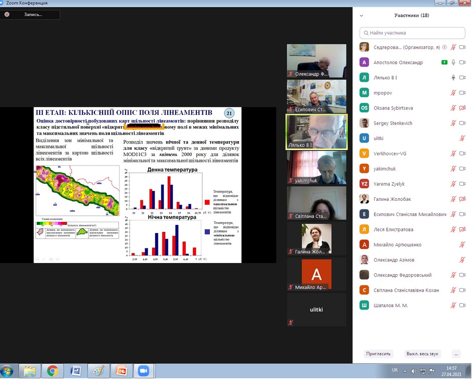 27 квітня 2021 року на засіданні спеціалізованої вченої ради Д 26.162.03 при ДУ «Науковий центр аерокосмічних досліджень Землі ІГН НАН України» відбувся, з використанням засобів відозв’язку, захист дисертаційної роботи